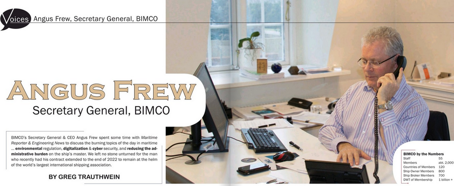 سی نیوز – دبیرکل بیمکو، معمولا زمان هایی را برای ارتباط با رسانه ها و خبرنگاران تعیین می کند تا در خصوص مسائل مهم حوزه حمل ونقل دریایی، مقررات زیست محیطی، توسعه فناوری و دنیای دیجیتال، امنیت سایبری و کاهش قوانین دست وپاگیر اداری صحبت کند. برای ما این فرصت مغتنمی بود تا سراغ آنوس فریو Angus Frew))، دبیرکل اتحادیه بین المللی دریانوردی یا همان بیمکو برویم تا از آخرین وضعیت این صنعت مطلع شویم. مردی که به تازگی قراردادش را تا پایان سال 2022 میلادی تمدید کرده تا سکان هدایت این اتحادیه مهم جهانی را بر عهده داشته باشد.