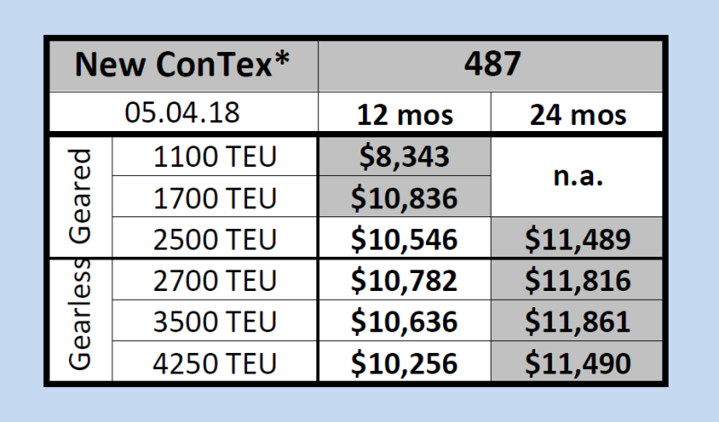 رده کشتی های 3500 TEU در مدت اجاره 24 ماهه با 3.7 درصد افزایش به نرخ 11 هزار و 861 دلار برای هر روز رسید. این در حالی است که رده کشتی های 2700 TEUsهمانند رده کشتی های 1100 TEUs با رشد 2.7 درصدی مواجه شدند و نرخ اجاره شان برای دوره 12 ماهه به ترتیب به 10 هزار 872 دلار و 8 هزار و 343 دلار رسید.