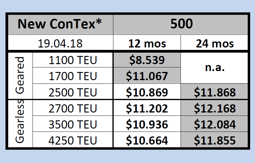 از سوی دیگر واحد 2700 TEUs برای مدت اجاره 24 ماهه نیز شرایط یکسانی داشت و رشد 1.3 درصدی را تجربه کرد. در این میان واحد 4250 TEUs بیشترین میزان رشد را به ثبت رساند. در این واحد بهای اجاره 12 ماهه 2.1 درصد بالاتر رفت.