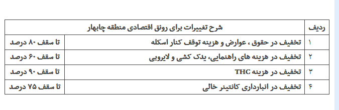 مشوق های غیر تعرفه ای در بندر شهید بهشتی چابهار