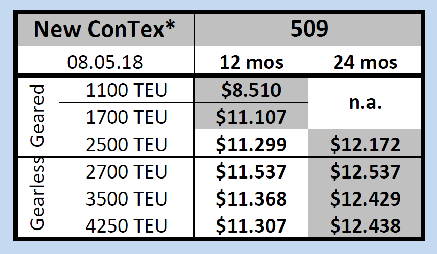 در بخش کشتی های پانامکس 4250 TEU کلاسیک، نسبت به هفته گذشته رشد 1.4 درصدی دیده می شود. این رشد برای اجاره کشتی به مدت 12 ماه به ثبت رسیده است. کشتی های واحد 3500 TEU نیز با 1.2 درصد در هر دو دوره زمانی 12 و 24 ماهه رشد داشته اند. در باقی واحدها نیز شاخص ها از 4 دهم درصد تا 1 درصد رشد نشان می دهند.