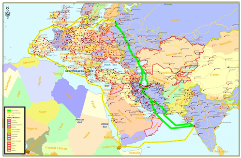 بندر بمبئی- بندرعباس/بندر چابهار- سرخس- تركمنستان- ازبكستان- قزاقستان- روسیه