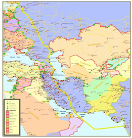 بندر بمبئی- بندرعباس/بندر چابهار- سرخس- تركمنستان- ازبكستان- قزاقستان- روسیه