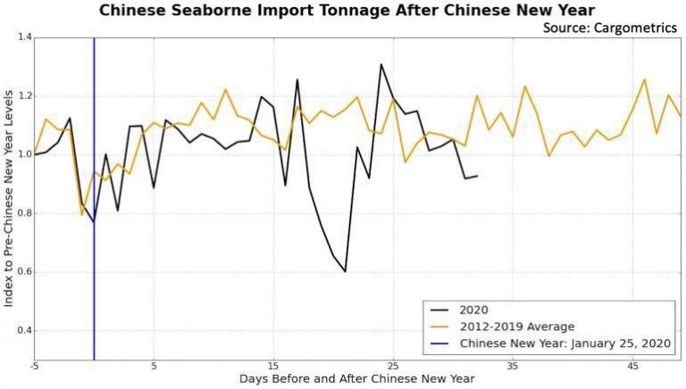 اطلاعات شرکت کارگو متریکس مستقر در آمریکا که محموله ها را در سراسر جهان ردیابی و رصد می کند نشان داده که هم واردات و هم صادرات چین در ماه مارس آرام آرام در حال بازگشت به شرایط قبل بوده و یک ثبات نسبی ایجاد شده است. این رشد در ماه مارس به تدریج افزایش خواهد یافت.