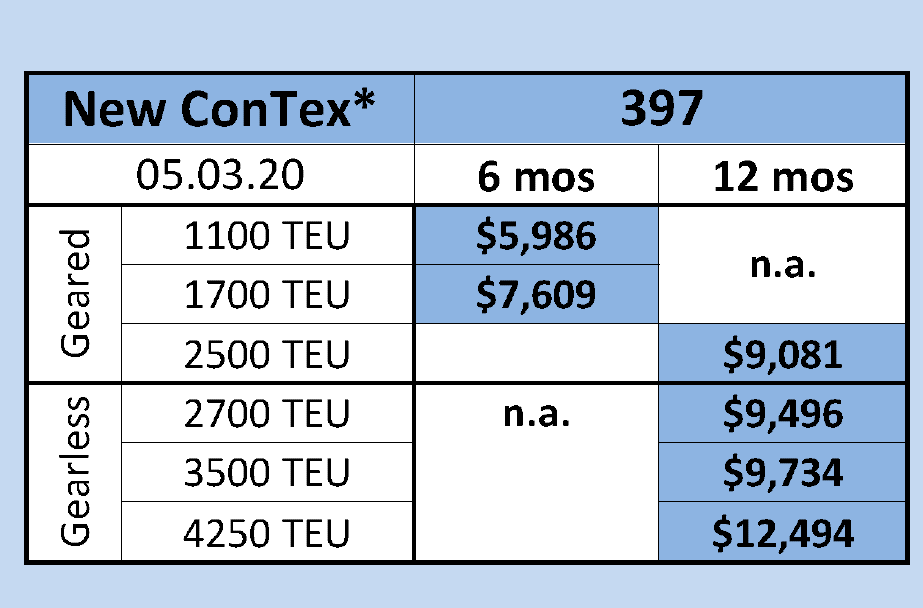 شاخص اجاره بهای کشتی های کانتنیری در ماه مارس با افت شدید نسبت به ماه گذشته اعلام شد. این شاخص با کاهش 28 امتیازی از 425 به 395 امتیاز رسید. این در حالی است که در انتهای سال گذشته میلادی شاخص اجاره بهای کشتی های کانتینری نیز 430 گزارش شده بود.