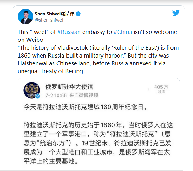 به گزارش پایگاه خبری سی نیوز، داستان از آنجا شروع شد که سفیر روسیه در چین، به مناسبت صدوشصتمین سالگرد احداث شهر ولادی وستوک به آنجا رفت و لقبی روسی به آن داد و یادآوری کرد که این شهر بندری از ابتدا به وسیله روسها و با عنوان «حاکم شرق» ساخته شده است.