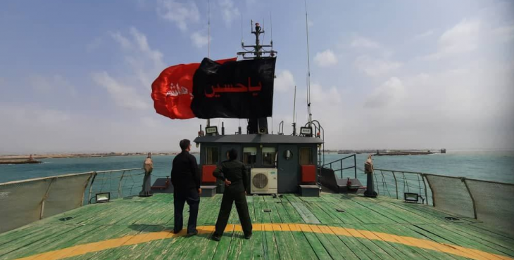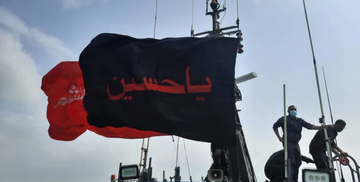 امروز در آستانه تاسوعا و عاشورای حسینی، پرچم سرخ قمر بنی هاشم و پرچم عزای ثارالله بر فراز شناور شهید ناظری بر کرانه خلیج فارس برافراشته شد.