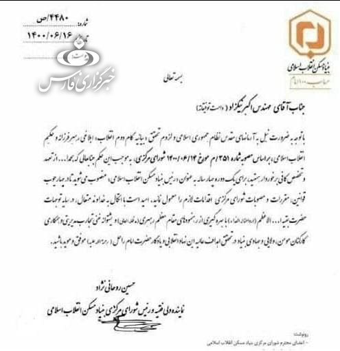 انتصاب رئیس بنیاد مسکن انقلاب اسلامی