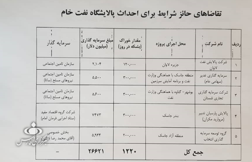 تصویر 1 – طرحهای احداث پالایشگاه نفت خام