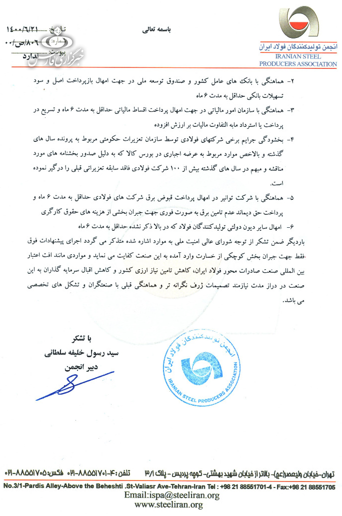 متن کامل نامه انجمن فولاد به شرح زیر است: