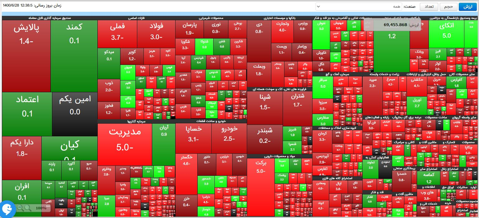 در فرابورس ایران هم اوضاع امروز تعریف خاصی نداشت و شاخص کل با کاهش 321 واحد به رقم 21 هزار و 146 واحد رسید. ارزش بازار اول و دوم فرابورس ایران به بیش از یک میلیون و 179 هزار میلیارد تومان رسید.