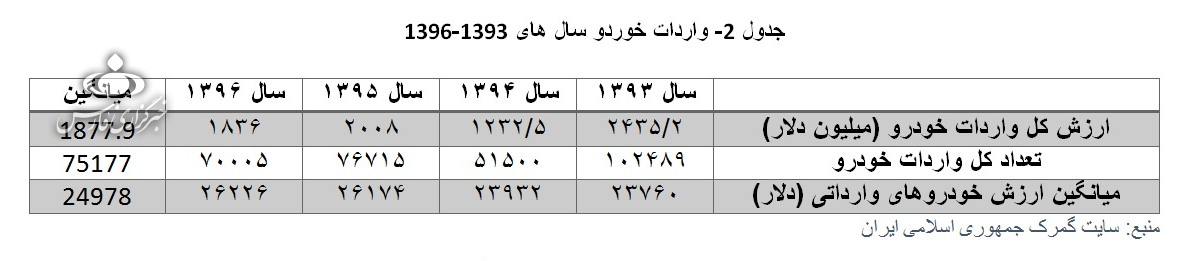 علاوه بر آن با توجه به اطلاعات موجود در جدول فوق که میانگین ارزش خودروهای وارداتی طی سالهای 1393 تا 1396 (واردات خودرو از سال 97 به بعد ممنوع بوده است) حدود 25 هزار دلار بوده است، بنابراین حداکثر تعداد خودرویی که با ارز حاصل از صادرات خودرو و قطعات میتوان به کشور وارد کرد، حدود 6 تا 7 هزار دستگاه خودرو است.