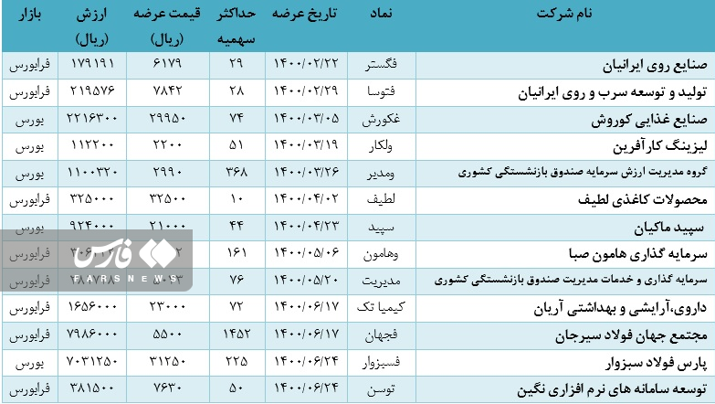 وضعیت عرضه‌های اولیه بورسی و فرابورسی سال 1400