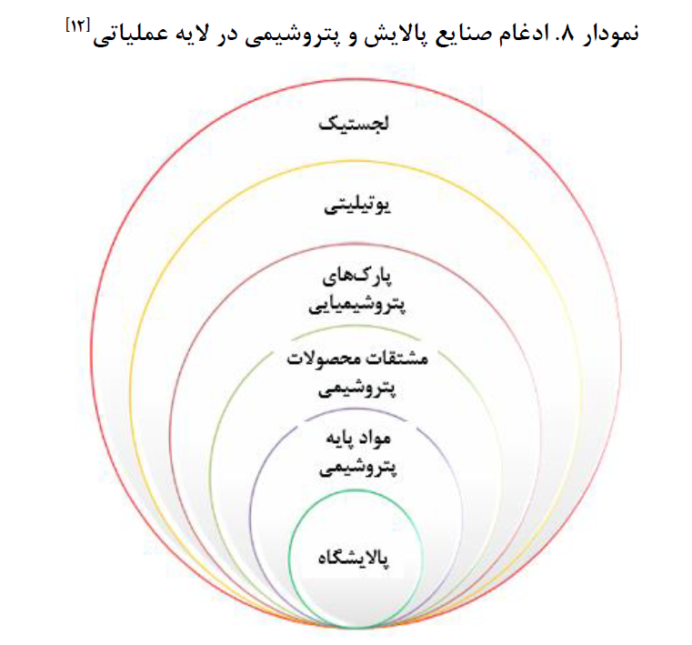 ایجاد ارزش افزوده بیشتر نه تنها ناشی از تولید مواد پیچیده‌تر، بلکه ناشی از صرفه‌جویی در هزینه‌ها و استفاده مشترک از منابع به ویژه یوتیلیتی است. مدل‌های مختلف ادغام در لایه عملیاتی در نمودار زیر نشان داده شده است.