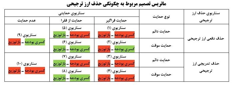 رویکرد اول، حذف دفعی یا تدریجی ارز 4200 تومانی می باشد. چالش دوم، انتخاب میان حمایت فراگیر یا حمایت از اقشار ضعیف یا عدم حمایت است. سومین رویکرد نیز تصمیم گیری درباره دائمی یا موقتی بودن این سیاست حمایتی میباشد.