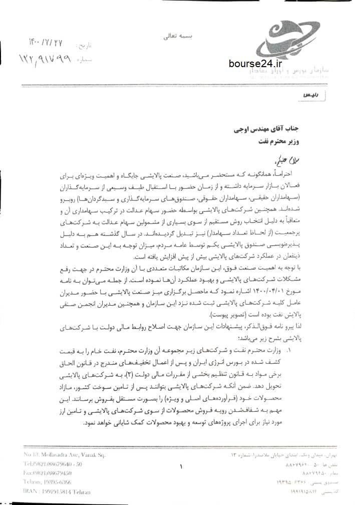 حال رئیس جدید سازمان بورس و اوراق بهادار در نامه ای که با اهمیت ارزیابی می شود ضمن تاکید بر اهمیت شفاف شدن روابط مالی دولت با پالایشگاه ها دو پیشنهاد راهگشا برای پایان سردرگمی سهامداران مطرح کرده است.