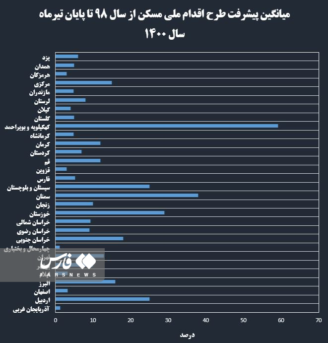 بر مبنای این گزارش، بیشترین پیشرفت فیزیکی طرح اقدام ملی مسکن در استان کهگیلویه و بویر احمد با پیشرفت نزدیک به 60 درصدی به ثبت رسیده است.