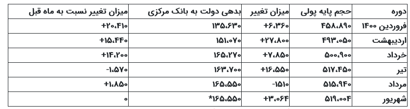 * رقم پایه پولی و رشد آن براساس گزارش بانک مرکزی از گزارش «تحلیل تحولات اقتصاد کلان و اقدامات بانک مرکزی در شهریور ماه 1400» بوده اما در آن گزارش رقم دقیقی ذکر نشده است.