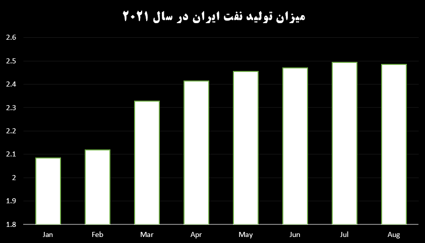 تصویر 1- میزان تولید نفت ایران در 2021 بر اساس آمار اوپک