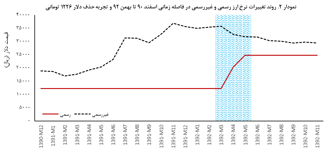 علمدارلو: در موج اول تحریم‌­ها در ابتدای دهه 1390 نیز دولت وقت به منظور کنترل بازار ارز اقدام به تخصیص ارز 1226 تومانی برای واردات کالا کرد، این سیاست در تیر و مرداد سال 1392 کنار گذاشته شد و حذف ارز ترجیجی در آن دوره زمانی اثر افزایشی بر روی قیمت دلار در بازار غیررسمی دلار به جا نگذاشت.