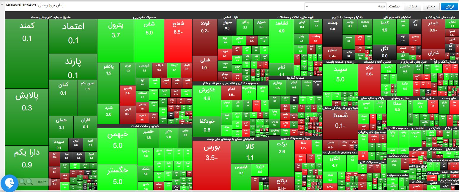 ارزش بازار در بورس تهران که ناشی از ارزش قیمت سهام شرکتهای موجود در بازار به نرخ روز است، به بیش از 5 میلیون و 637 هزار میلیارد تومان رسید.