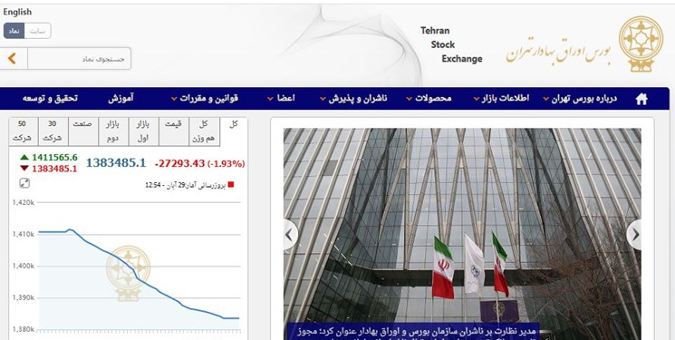 عقب‌نشینی 27 هزار و 293 واحدی شاخص بورس تهران