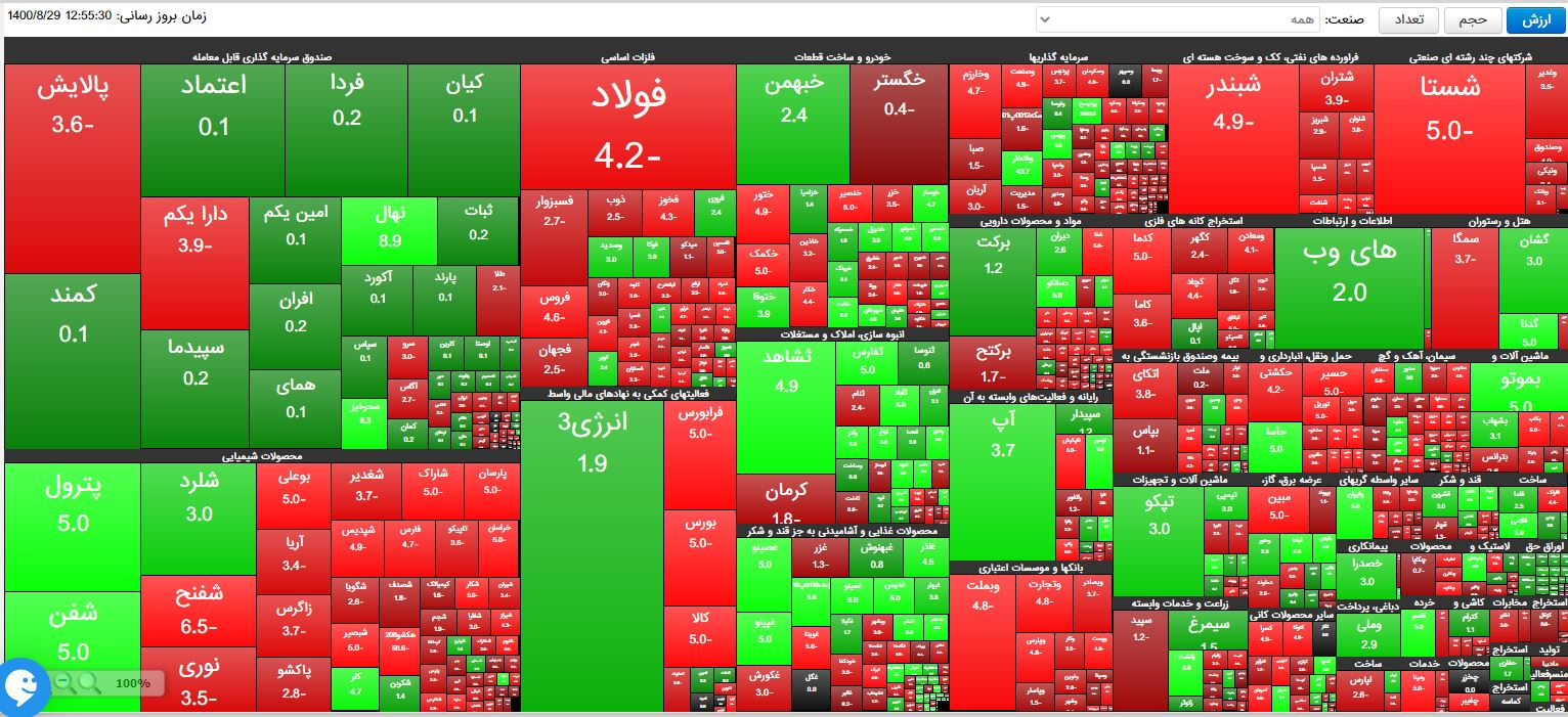 امروز همه شاخص‌های بورس قرمز بودند، به گونه‌ای که شاخص کل و شاخص قیمت با نگاه وزنی ارزشی هر کدام 1.93 درصد کاهش یافتند.