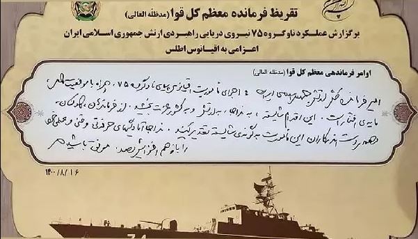 «امیر فرماندهی کل ارتش جمهوری اسلامی ایران؛ اجرای ماموریت اقیانوس پیمای ناوگروه 75، همراه با موفقیت کامل، مایه افتخار است. این اقدام شایسته، به نداجا، به ارتش و به کشور عزت بخشید. از فرماندهان، کارکنان و همه دستاندرکاران این ماموریت به گونه شایسته تقدیر کنید. نداجا آمادگیهای حرفهای و فنی و علمی خود را باز هم افزایش دهد. موفق باشید».