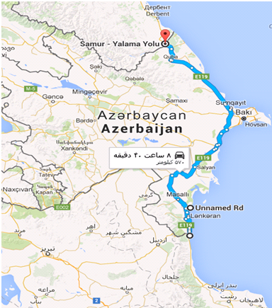 در حال حاضر مسیر انتخاب شده برای صادرات به روسیه، مسیر سنتی آستارا و از طریق کشور ثالث آذربایجان و مرز خشکی است (تصویر 1). این مسیر زمینی مشکلات متعددی را پیش روی صادرکنندگان ایرانی قرارداده است که این مشکلات تحت تاثیر «سنگاندازیهای گمرک کشور آذربایجان» و دوم «محدود بودن ظرفیت ترانزیت مرز آستارا و پل آستاراچای» ایجاد شده و باعث تحمیل هزینه و زمانبر شدن صادرات به روسیه شده است.