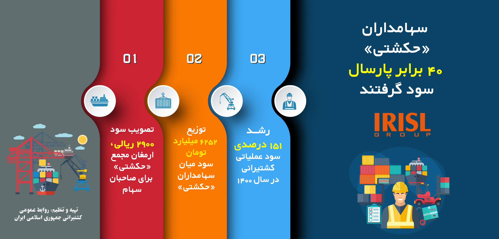 بر اساس این اینفوگرافی که در پرتال روابط عمومی کشتیرانی جمهوری اسلامی ایران منتشر گردید، سهامداران نماد “حکشتی” در بازار بورس، ۴۰ برابر پارسال سود گرفتند.