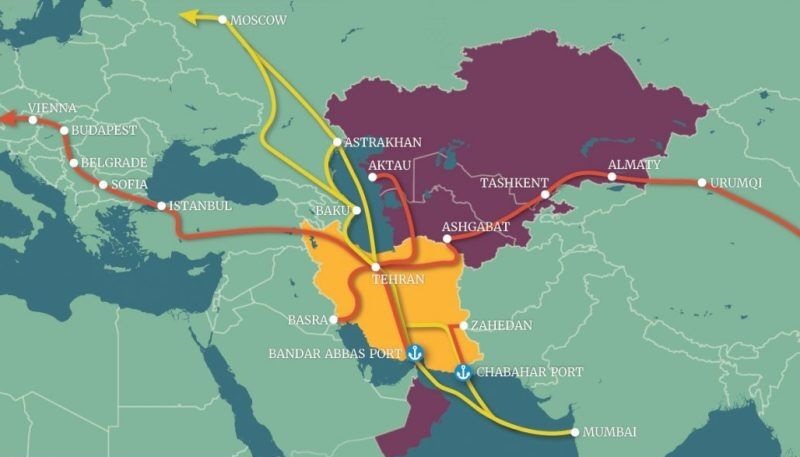 ولادیمیر تسیگانوف، رئیس شعبه مسکو انستیتو مشکلات حمل و نقل آکادمی علوم روسیه می گوید: کریدور حمل و نقل از چهار مسیر تشکیل شده است. اولی در امتداد سواحل غربی دریای خزر از جمهوری داغستان و سپس از طریق جمهوری آذربایجان و ایران با دسترسی به بنادر خلیج فارس، بازارهای هند، پاکستان، آسیای جنوب شرقی، کشورهای حوزه خلیج فارس ایجاد می شود، همچنین این مسیر از آفریقا هم می گذرد.