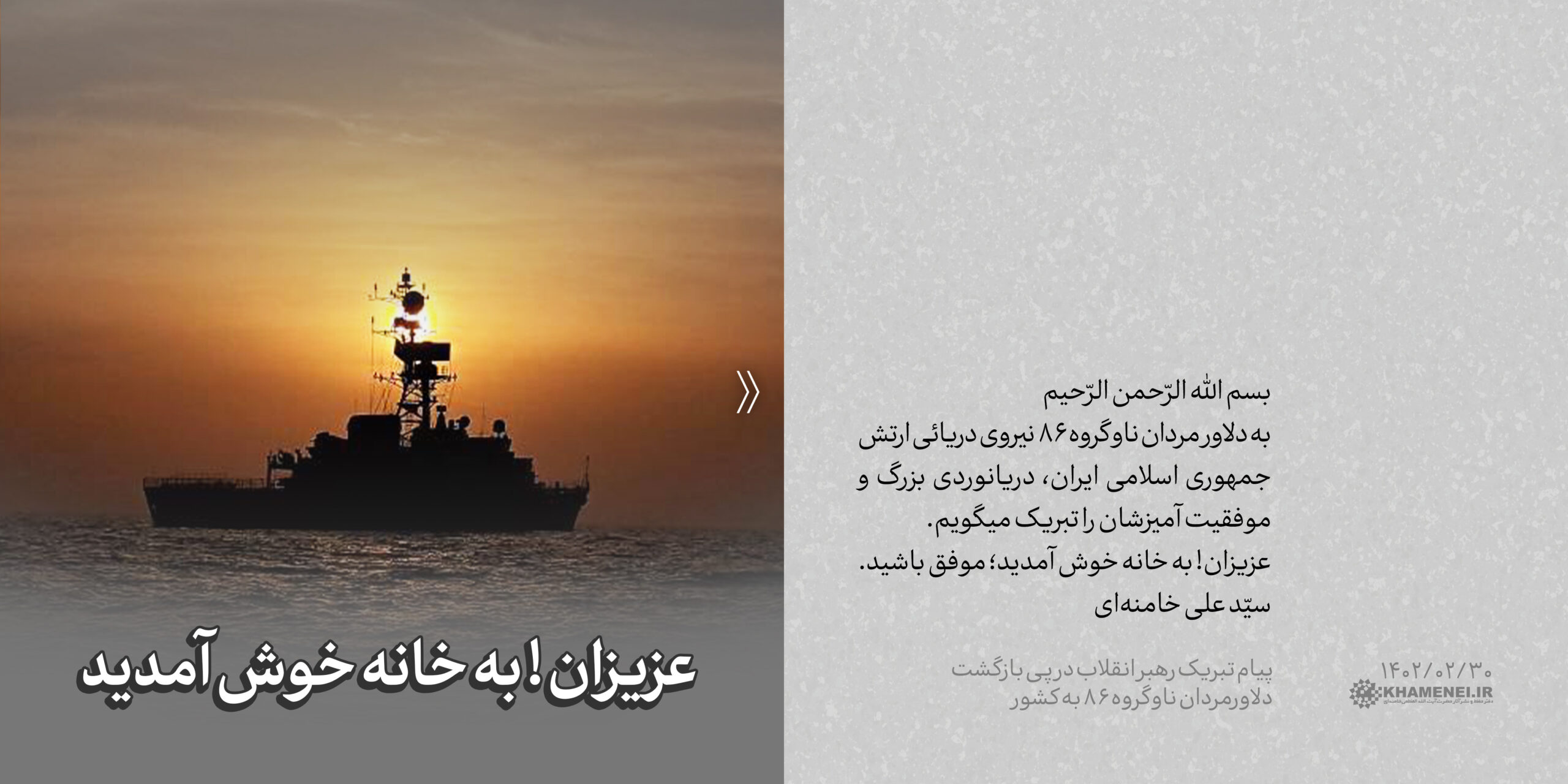 پیام تبریک رهبر انقلاب در پی بازگشت دلاورمردان ناوگروه ۸۶ به کشور
