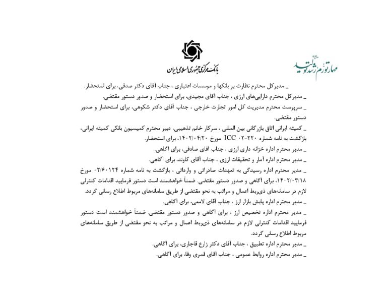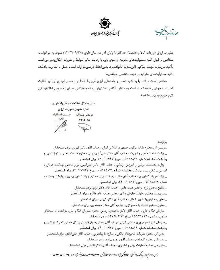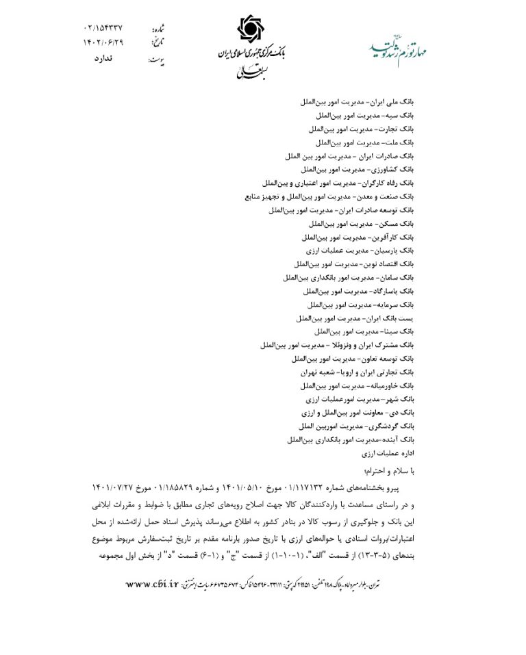 در نامه یادشده از بانکهای عامل خواسته شده است که مراتب را به همه شعب و واحدهای ارزی ذیربط ابلاغ و بر حسن اجرای آن نیز نظارت کنند. همچنین خواهشمند است به منظور آگاهی مشتریان به نحو مقتضی در این زمینه اطلاعرسانی لازم صورت گیرد.