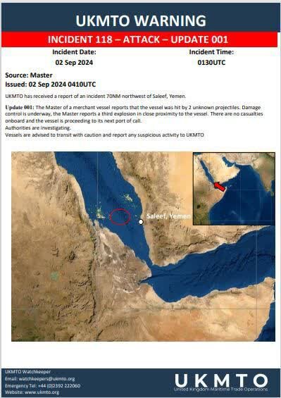 سازمان عملیات تجارت دریایی انگلیس صبح امروز (دوشنبه) اعلام کرده بود که گزارشی درباره وقوع یک حادثه در فاصله ۷۰ مایل دریایی در شمال غربی منطقه «الصلیف» یمن دریافت کرده است.