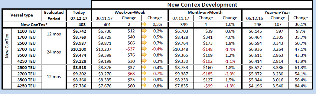 فوناسبا شاخص ارزیابی اجاره زمانی کشتی های کانتینربر را در هفته چهل ونهم سال ۲۰۱۷ اعلام کرد. بر اساس اطلاعیه جدید، شاخص ها 2 امتیاز افزایش نشان می دهد. اگر چه حتی با این افزایش نیز روند حرکت ثابت خود را تا حد زیادی حفظ کرده است.