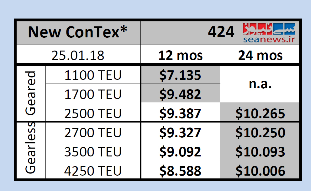 به گزارش پایگاه خبری سی نیوز، به دلیل افزایش بار و تقاضا و کمبود کشتی ها مبلغ کرایه های حمل  تا حدودی افزایش داشته است. شاخص جدید ارزیابی اجاره کشتی های کانتینری (ConTex Index) در هفته گذشته 7 امتیاز دیگر کسب کرده و اکنون با امتیاز 424 امتیاز کار خود را آغاز خواهد کرد.
